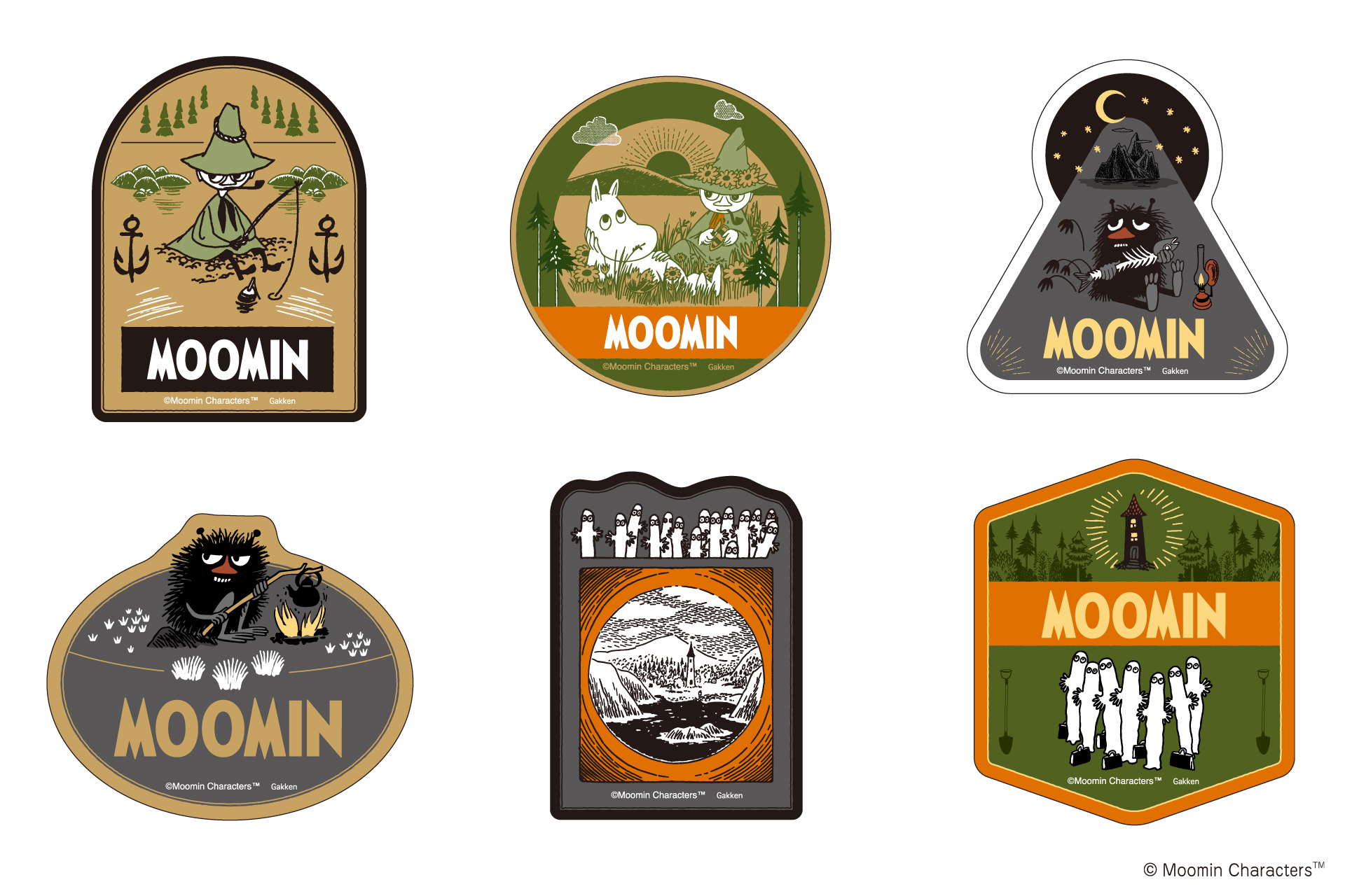 続いてご紹介するのは、森や湖、キャンプなど北欧のアウトドアライフをテーマにしたシリーズ。自然の中でのびのびと過ごすムーミンたちとカーキやサンドベージュ、ブラックを基調に、アクセントのオレンジが映えるお洒落なデザインがアクティブな気分を盛り上げます。