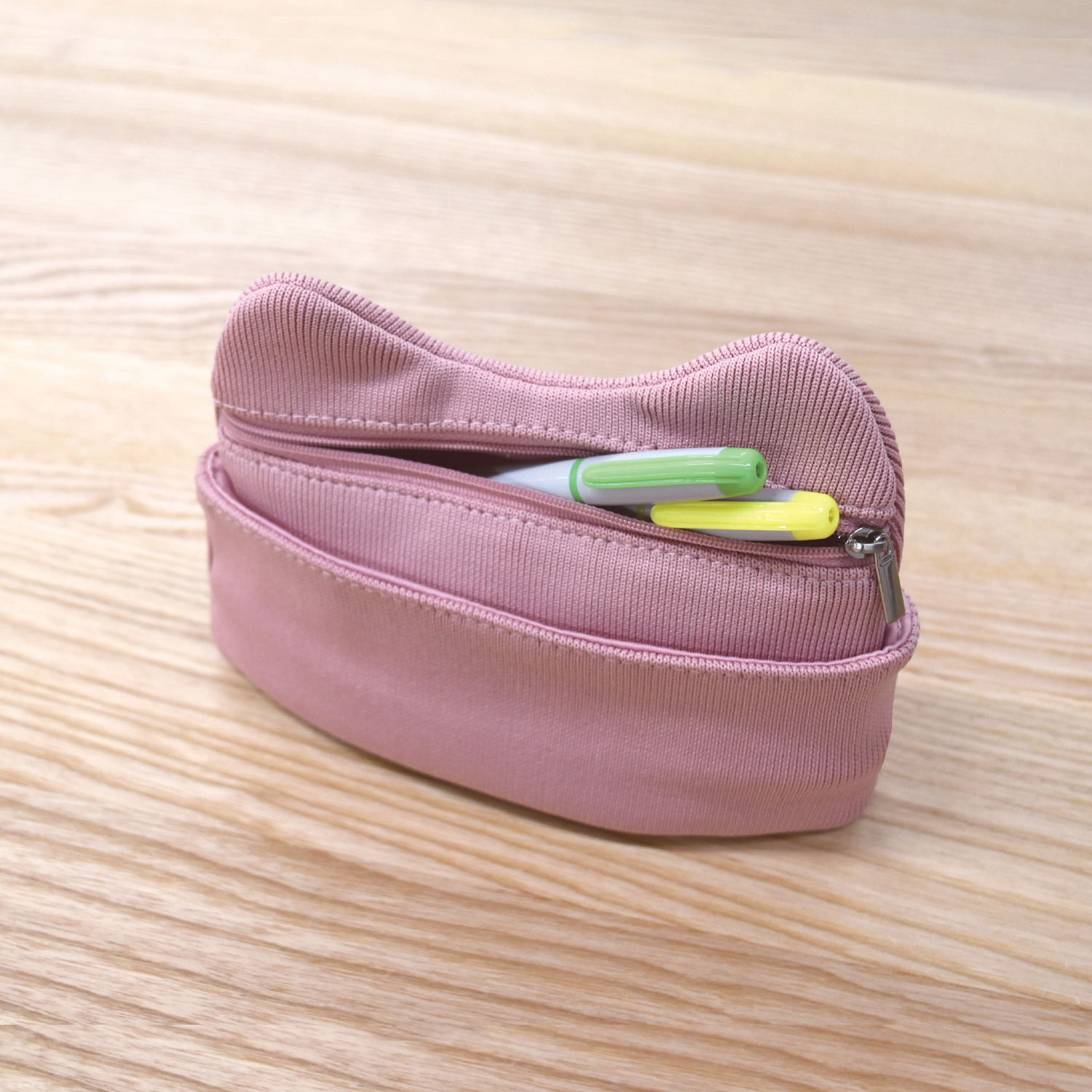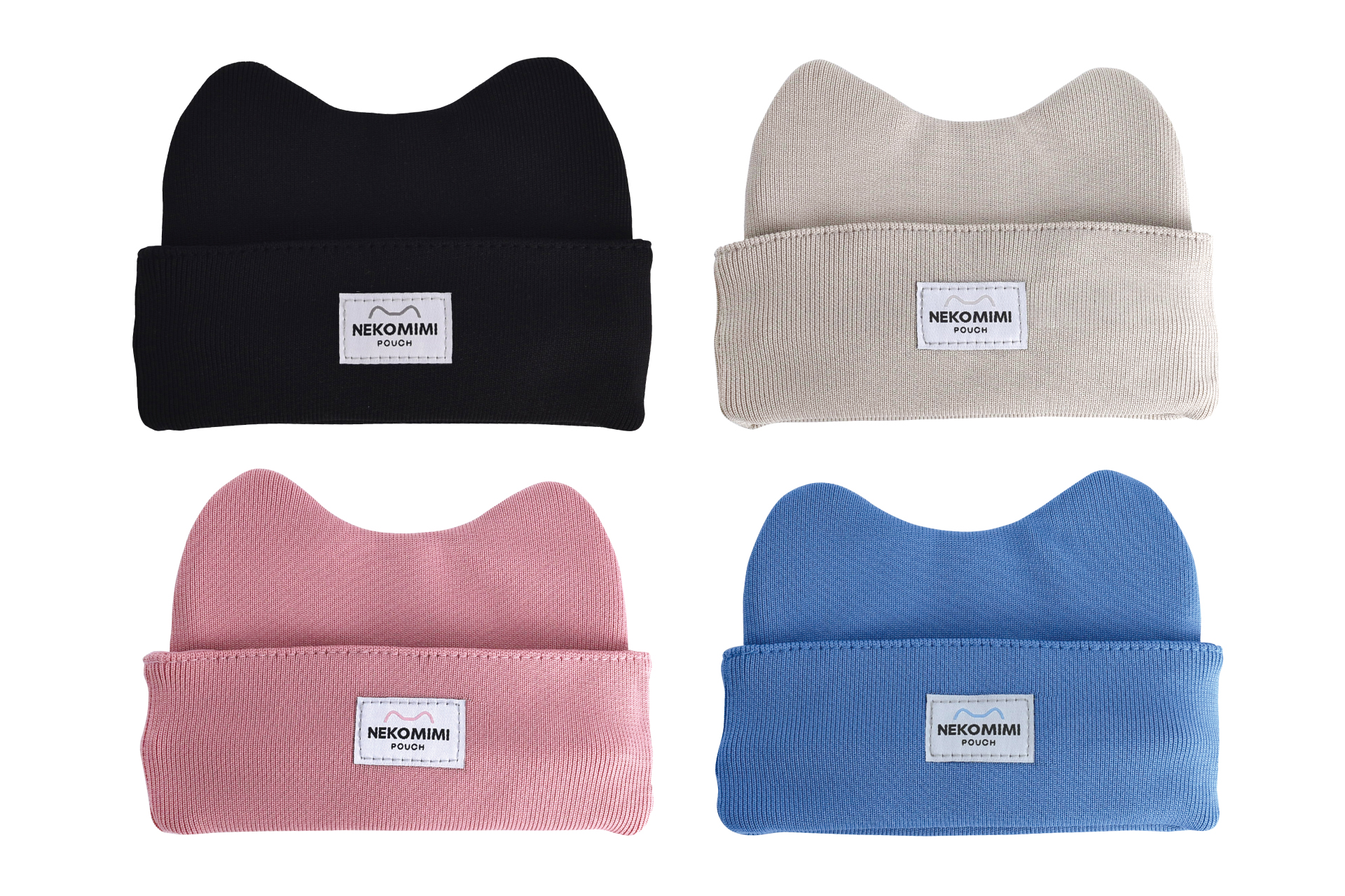 帽子のようなユニークな形に、かわいい猫耳をプラスしたデザインが特徴のペンポーチ。手触りのよい柔らかなニット風素材で、移動の際にはA5サイズのノートや手帳の上部にさっとかぶせて持ち運ぶことができます。