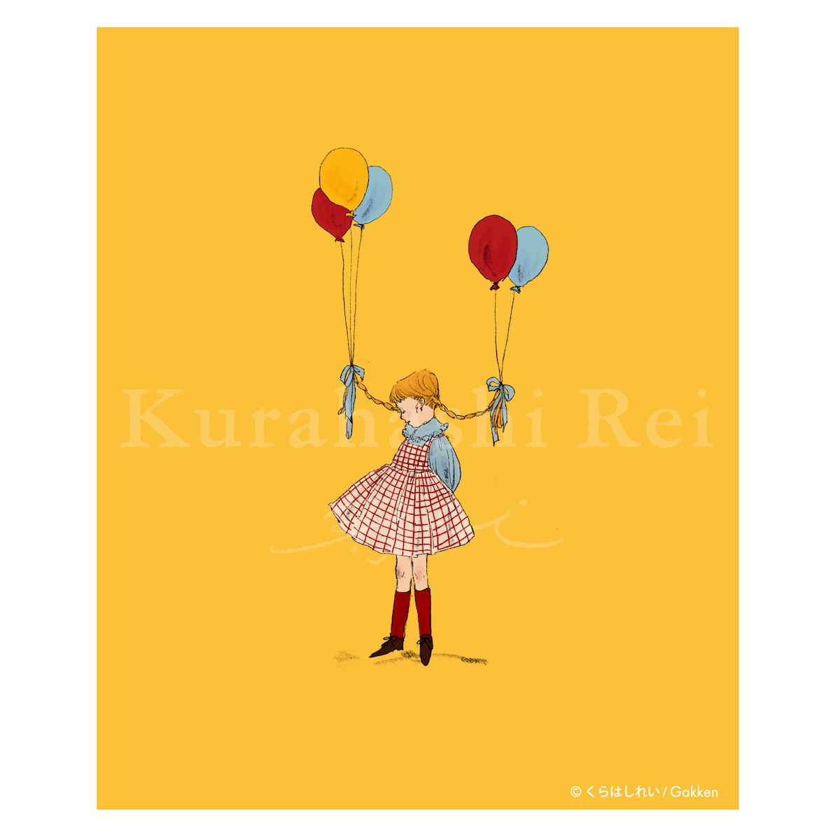 風船の紐で髪を結んでいる女の子のイラストです。くらはしれいの直筆サイン入り。