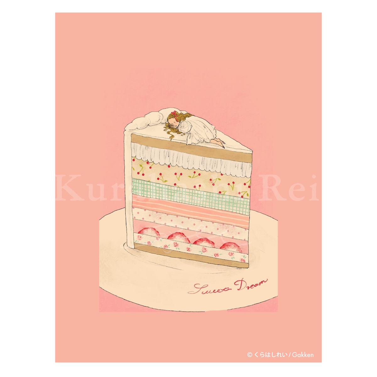 ケーキの上に女の子が眠っているイラストです。くらはしれいの直筆サイン入り。