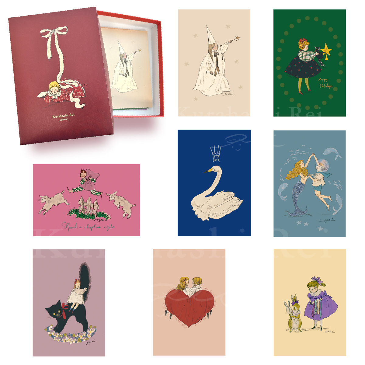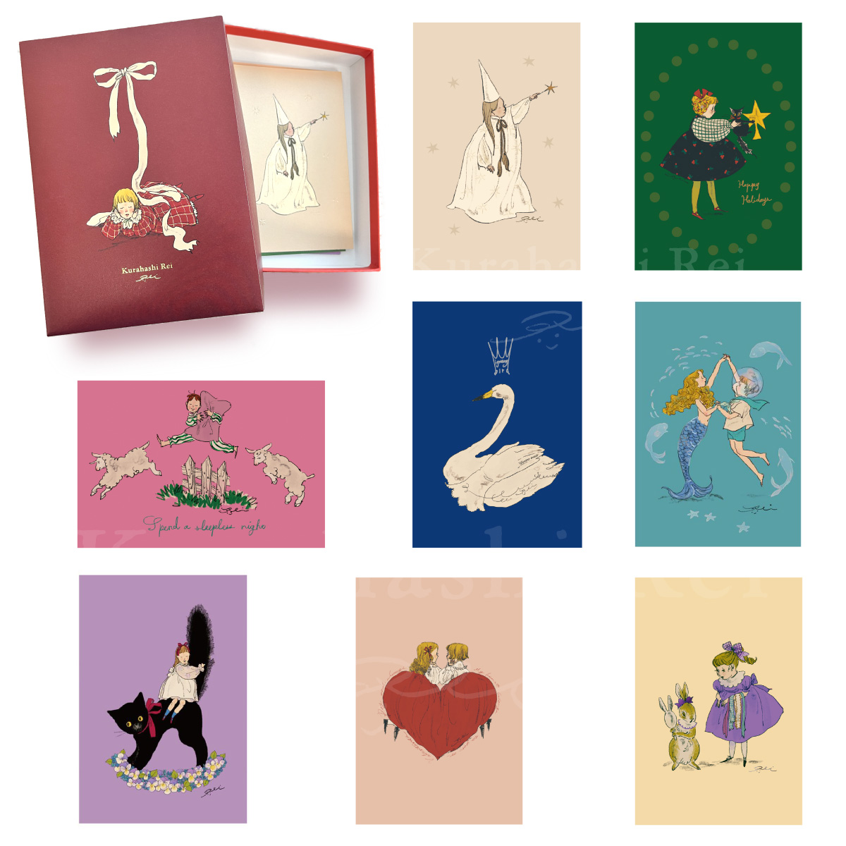 人気イラストレーター「くらはしれい」さんが描く魅力的なアートを、紙質や印刷加工にこだわったプレミアムなポストカードでお楽しみいただける、豪華ボックス付きセットが登場しました。