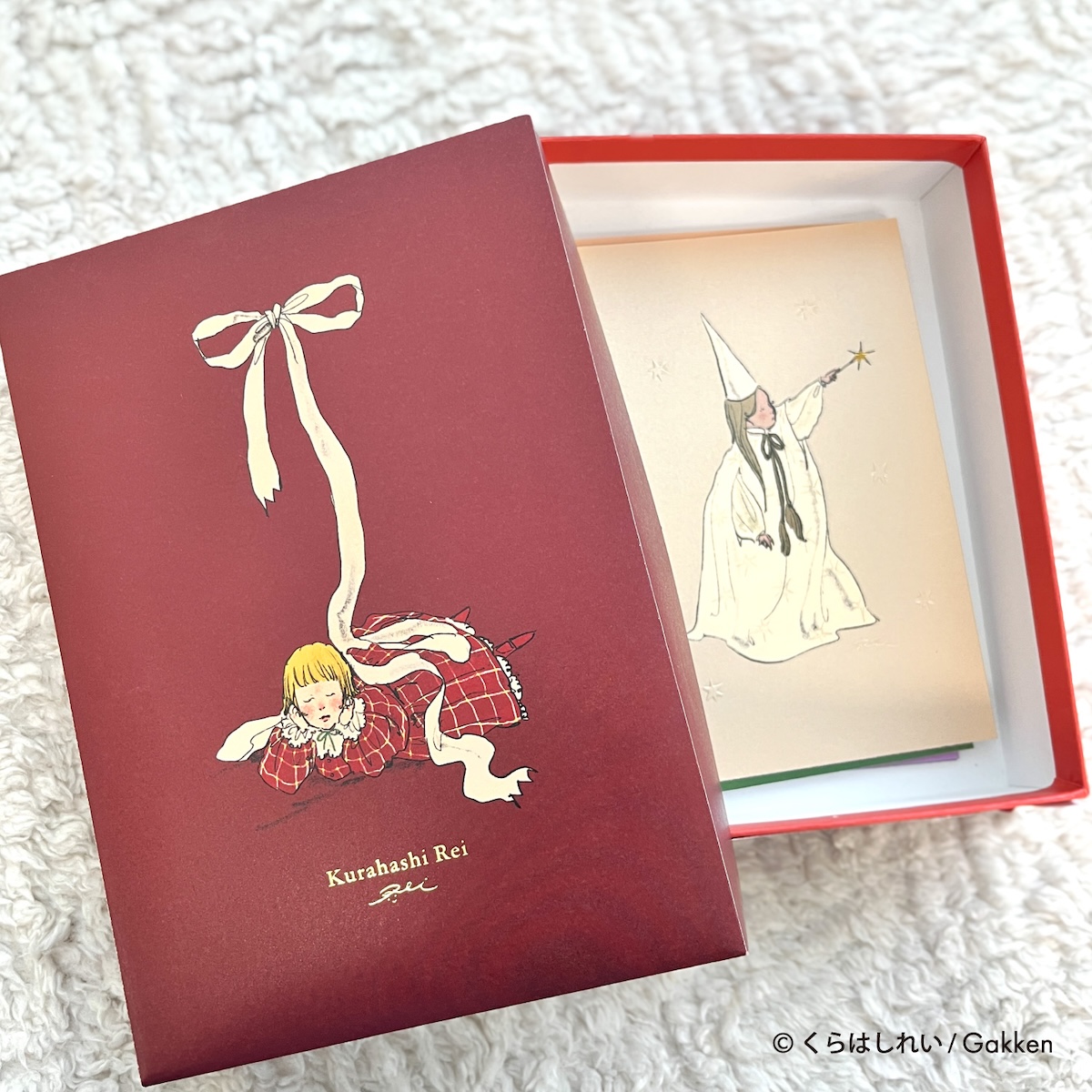 ポストカードだけでなく、収納ボックスにもくらはしれいさんのイラストが施されていることがポイント。