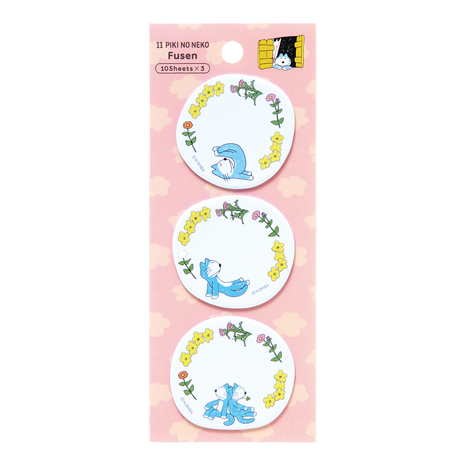 「11ぴきのねことぶた」に登場する、花々とくつろぐねこのイラストを使用したダイカット付箋セットです。