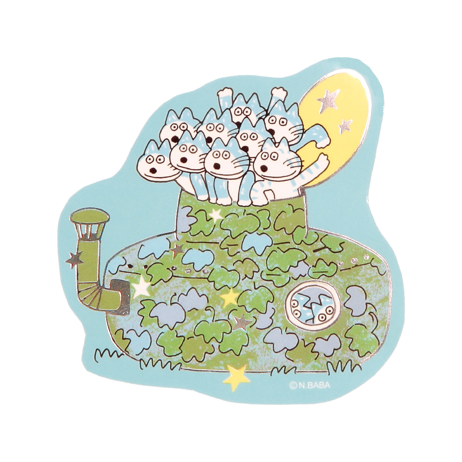 11ぴきのねこ 箔押しステッカー(宇宙船)