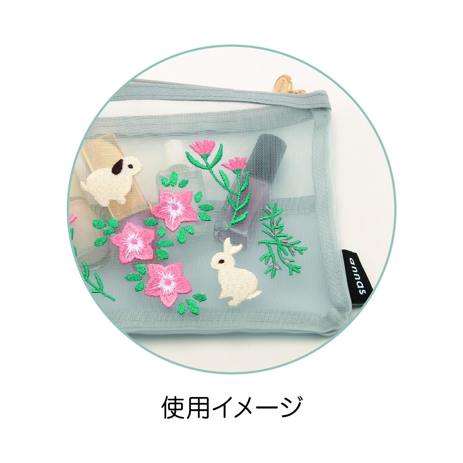 刺繍メッシュポーチ(ウサギ)