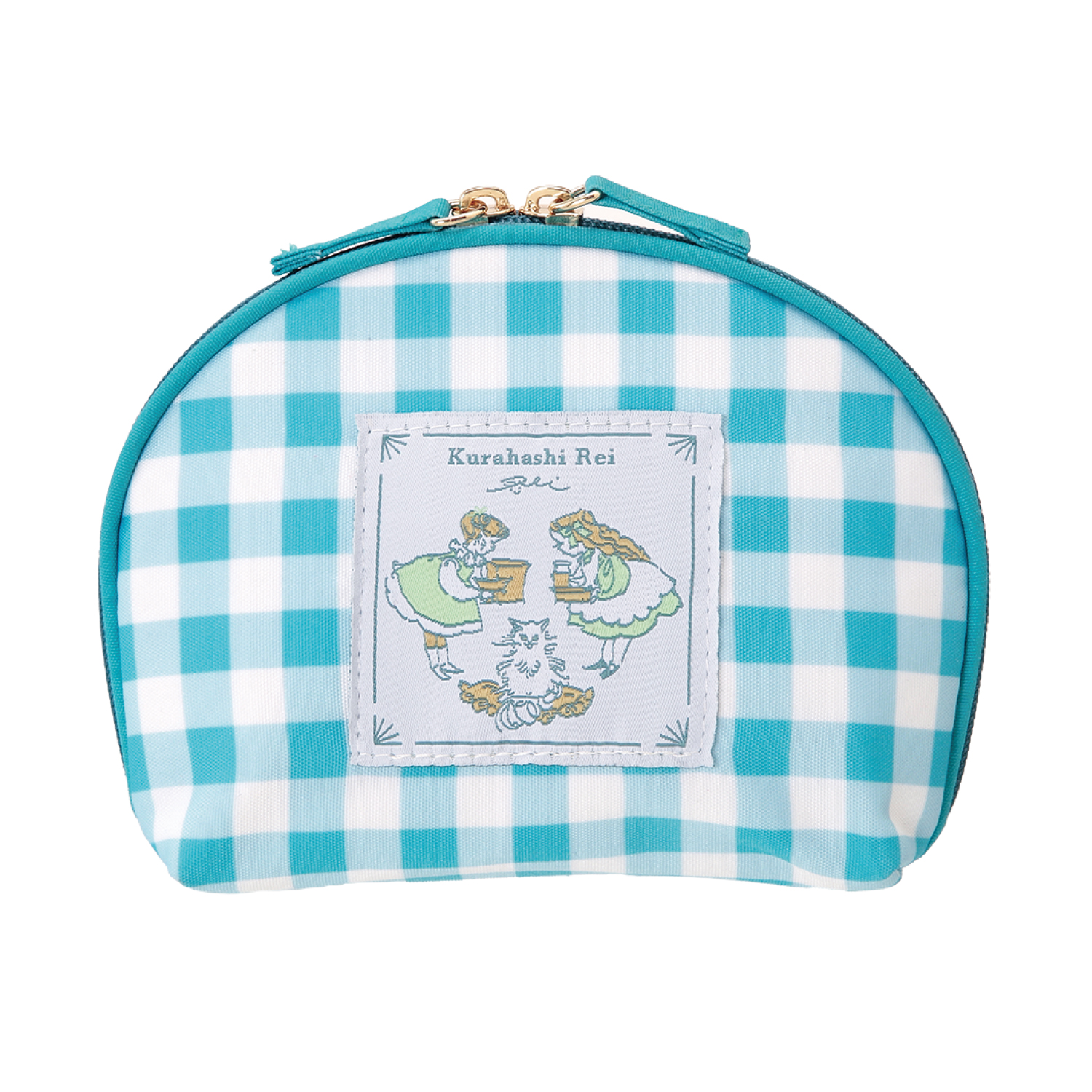 ギンガムチェックに猫と少女を添えて。毎日使いたくなるシェルポーチ。