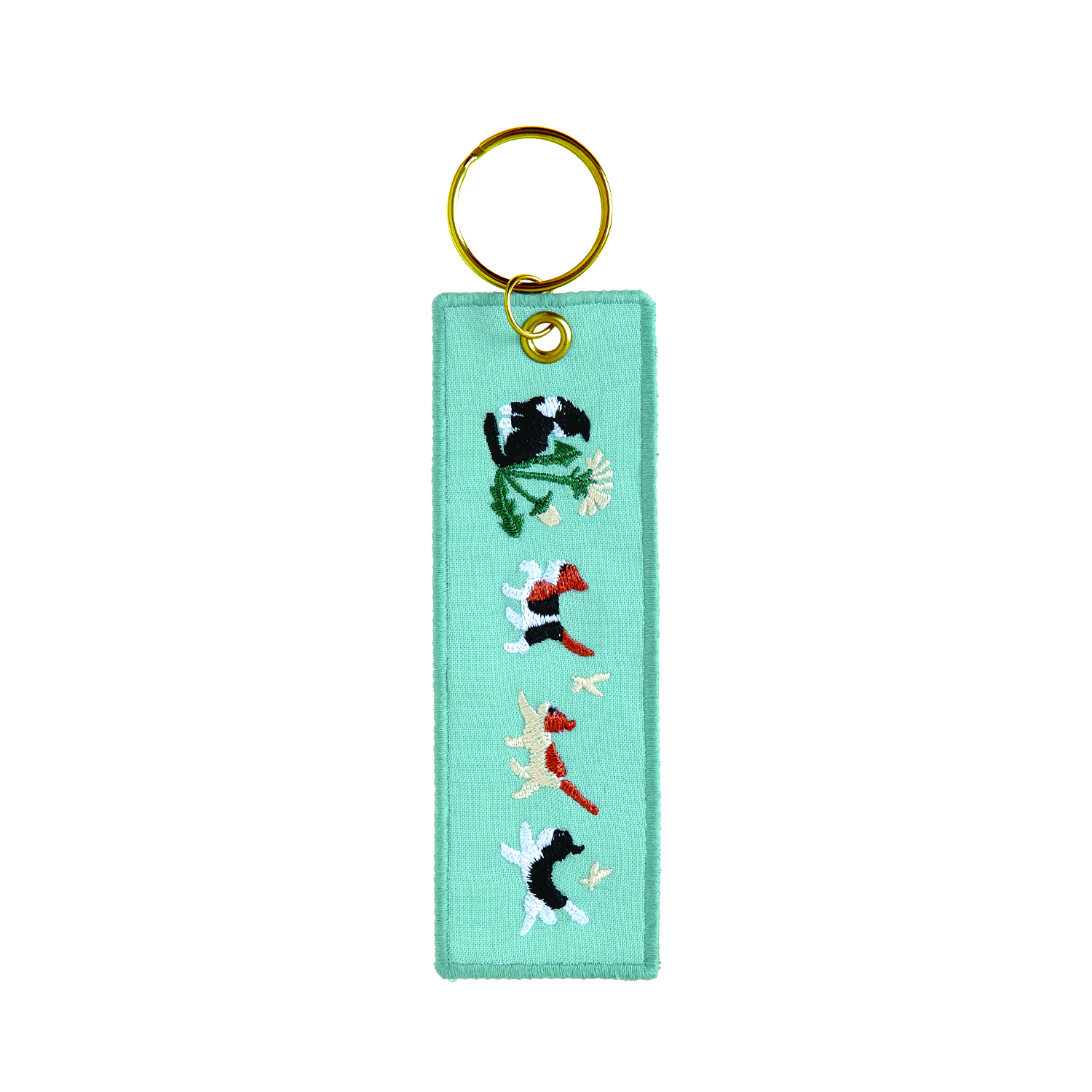 刺繍で表現された動物たちが並んでいる姿が可愛い!縦長のベースに愛らしい刺繍がほどこされたキーホルダーです。