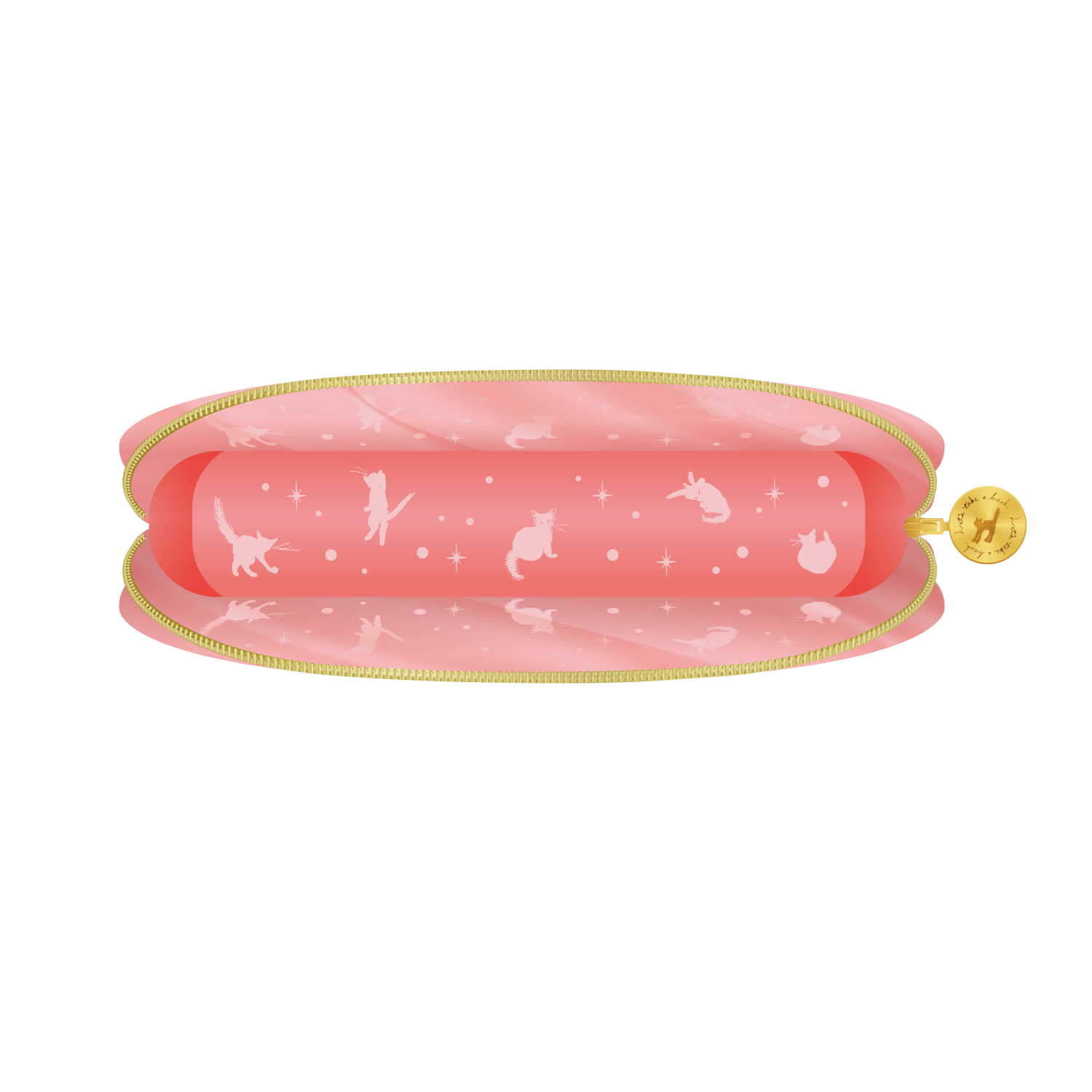 内側には猫と星の総柄が広がり、ファスナーを開くたびにちょっと嬉しい気持ちに。