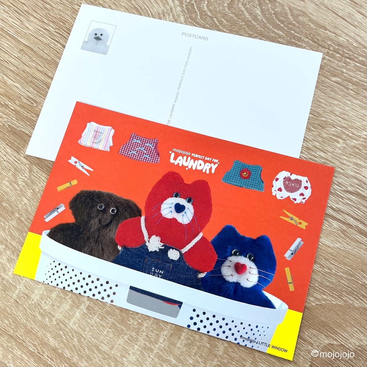mojojojo LAUNDRYシリーズの世界観を、しっかり楽しめるポストカード。インテリアとして飾ったり、プレゼントに添えたり、もちろん郵送したりと使い道はさまざま。1枚ごとにテーマが異なり、コレクションの魅力がしっかり表現されたラインナップ。フレームに入れて飾ると、ちょっとしたアートのように楽しめます。