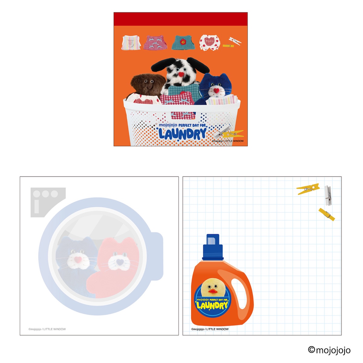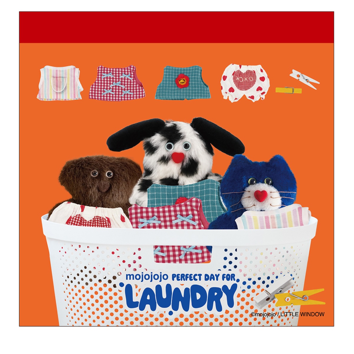 大人気ブランド『mojojojo』のステーショナリー第2弾が登場。LAUNDRY(洗濯)がテーマのオリジナルデザイン!mojojojoでも人気の高い"Todd friends"が洗濯を楽しむ様子や、かわいい洋服を身につけた、ポップで楽しいコレクション。
