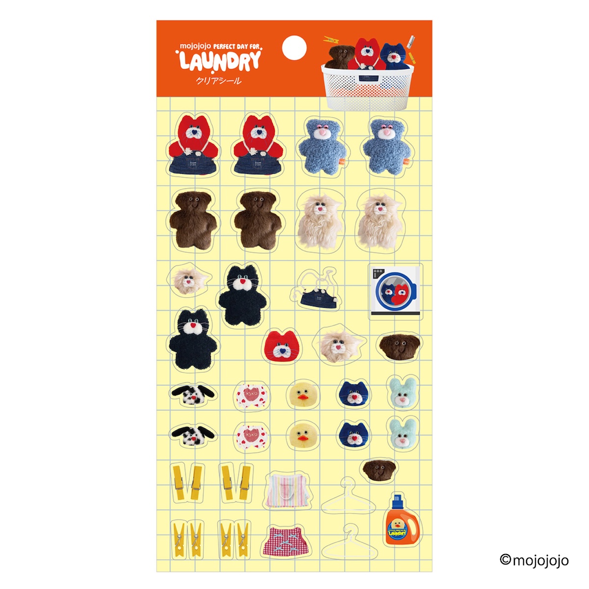 大人気ブランド『mojojojo』のステーショナリー第2弾が登場。LAUNDRY(洗濯)がテーマのオリジナルデザイン!mojojojoでも人気の高い""Todd friends""が洗濯を楽しむ様子や、かわいい洋服を身につけた、ポップで楽しいコレクション。