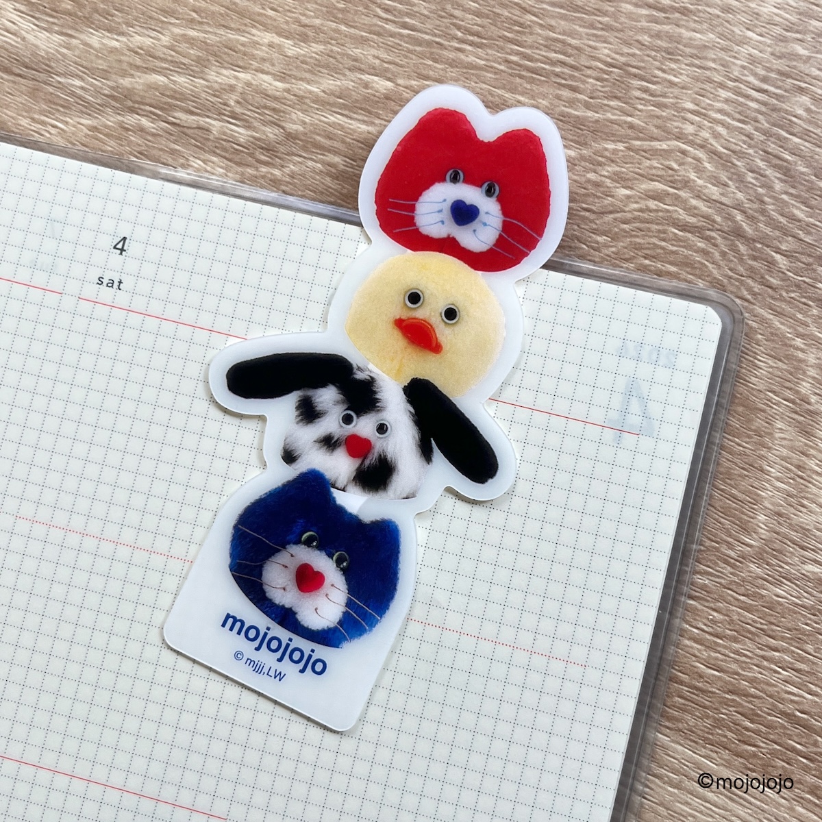 本や手帳に挟むのはもちろん、スマホケースにも入れられるコンパクトなブックマーカー。ポップでファンシーなmojojojoの世界観がギュッと詰まっていて、毎日持ち歩きたくなるデザインです。読書のたびにTodd friendsのかわいさを感じられ、気分がふっと軽くなるアイテム。