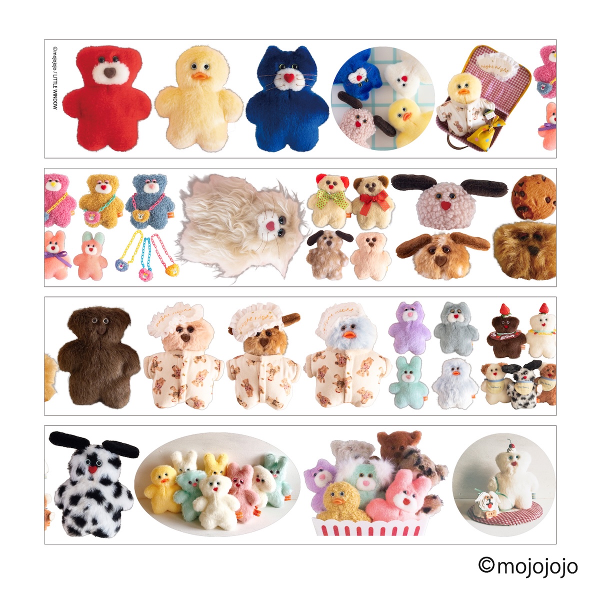 ぬいぐるみ作家尾崎歩美さんが展開するぬいぐるみブランドmojojojoを贅沢にデザインした、クリアロールステッカー。