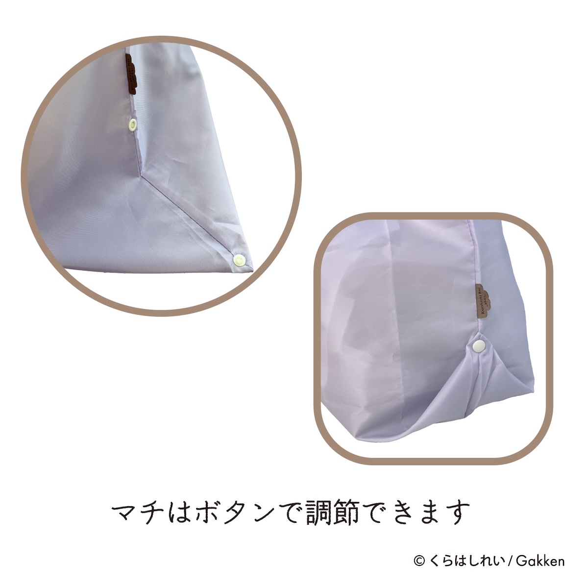 マチ付きで、ボタンを留めることによってマチ調整可能な仕様になっています。