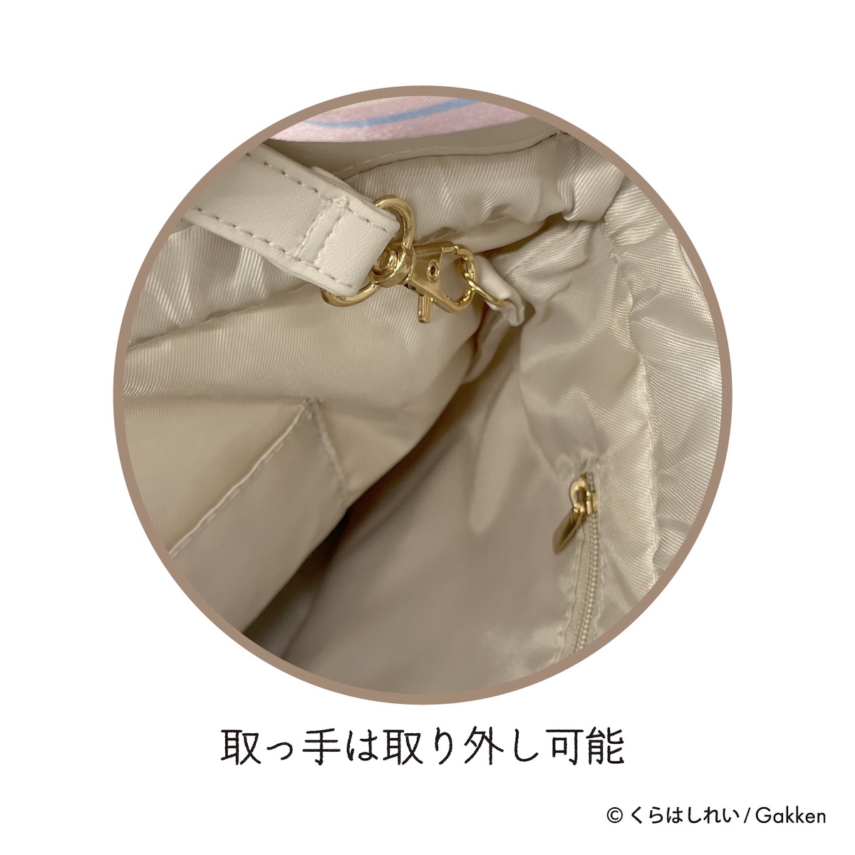 さらに、取っ手も取り外し可能。巾着タイプで中身が見えにくく、コンパクトながらも必要なものをしっかり収納できるサイズ感。ちょっとしたおでかけにもぴったりです。