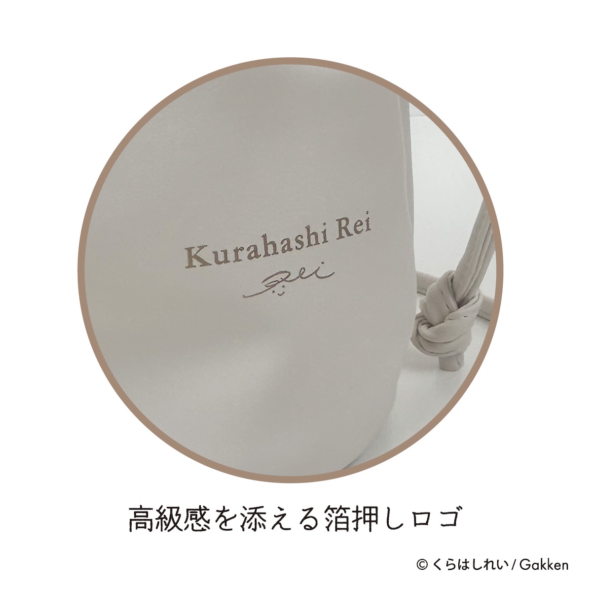 バッグ本体はあえて絵柄を入れず、ナチュラルで落ち着いた印象に仕上げ、箔押しロゴが上品なアクセントを添えています。