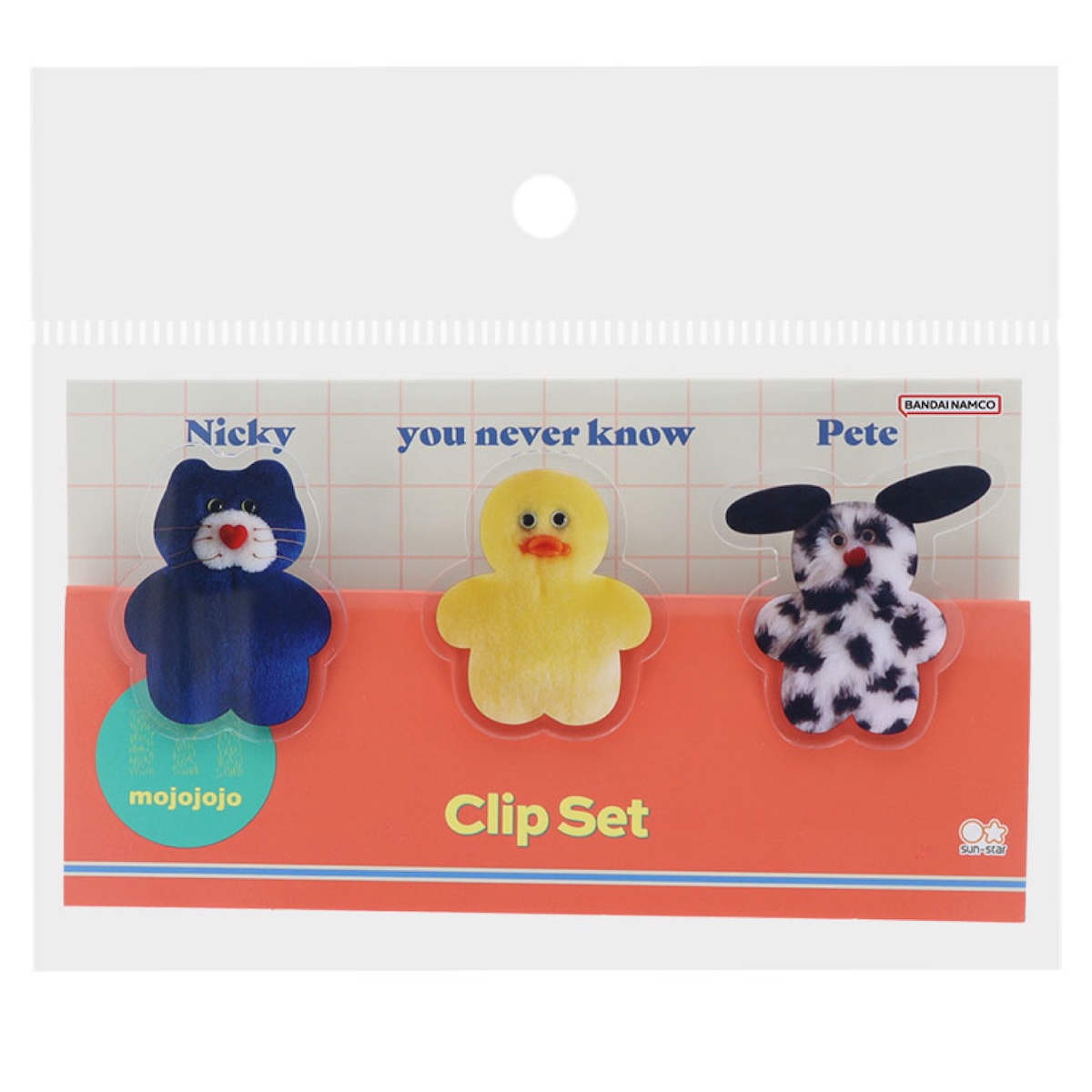 ぬいぐるみ作家・尾崎歩美さんによる「mojojojo」から、アクリルクリップセットが登場。メモやレシート、配布プリントの一時留めはもちろん、ラッピングのひと工夫にも。色違い3種セットで、シェアやギフトにもぴったり。