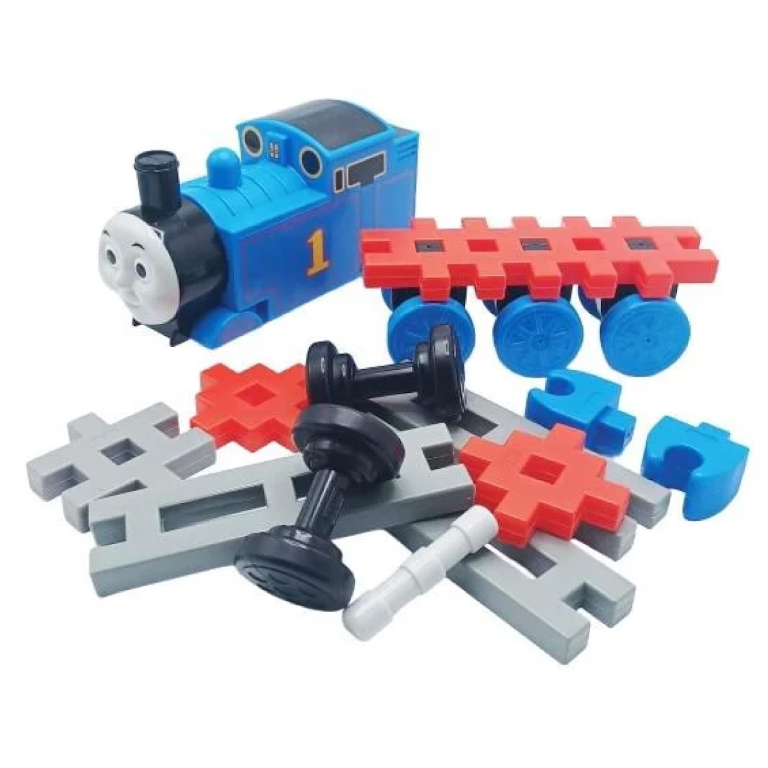 ニューブロック仕様の⼤きなトーマスの⾞体ブロックと、滑車が作れるパーツがバッグに⼊ったセットです。